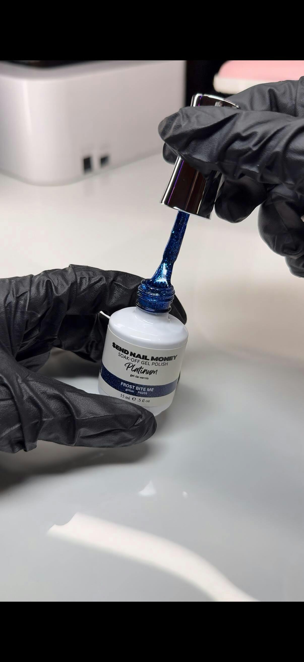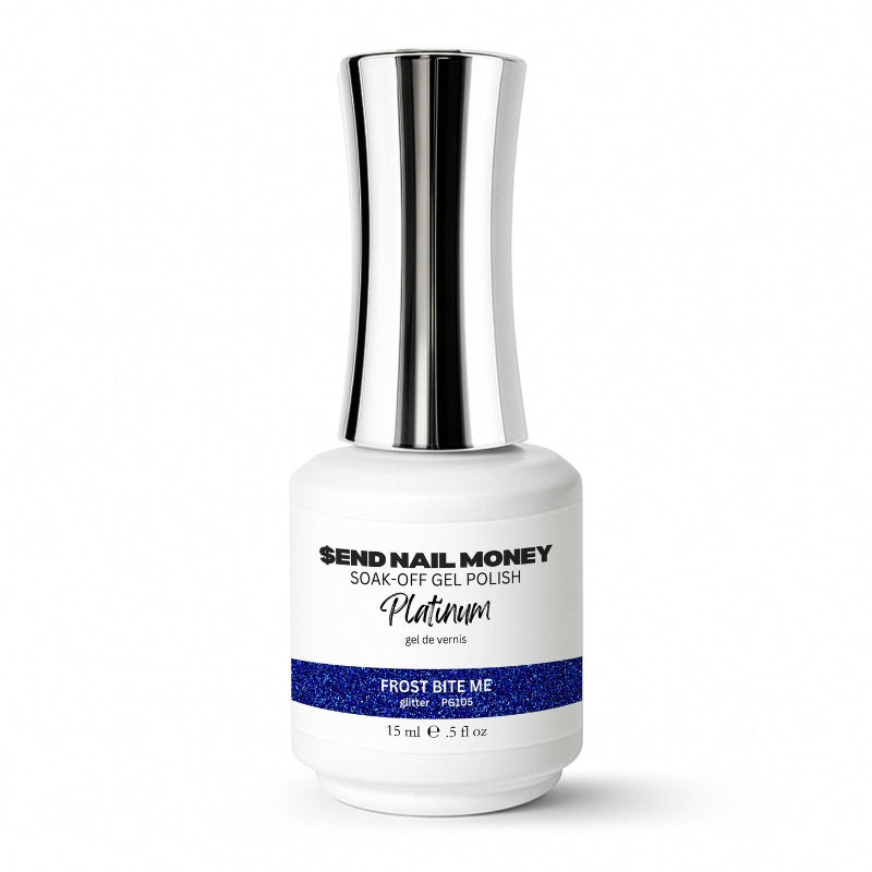 freeze them out with frost bite me, a bold cobalt blue with a dazzling platinum glitter effect. one coat and they’ll be left cold.